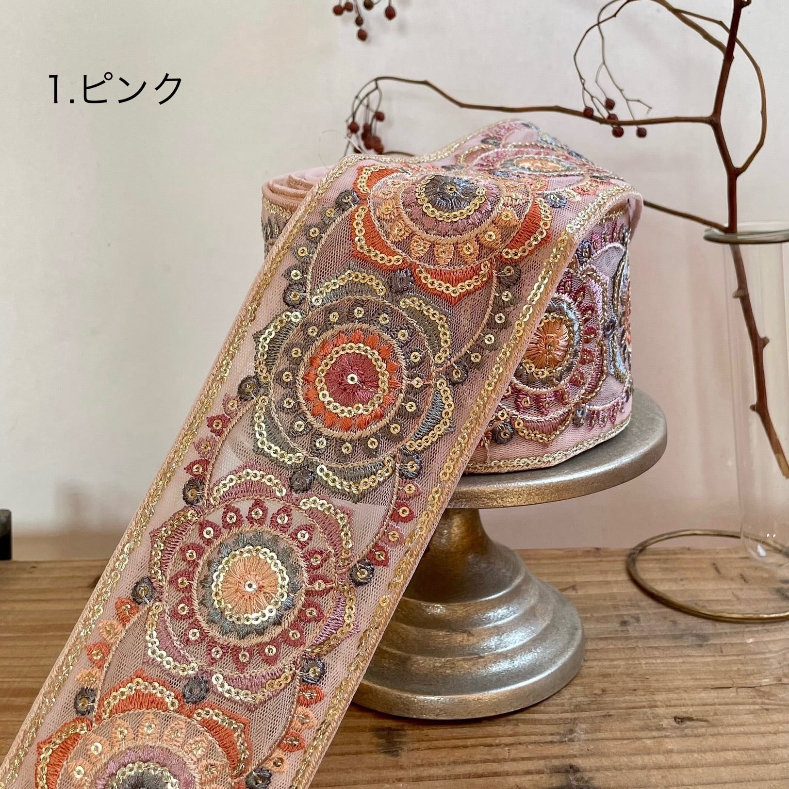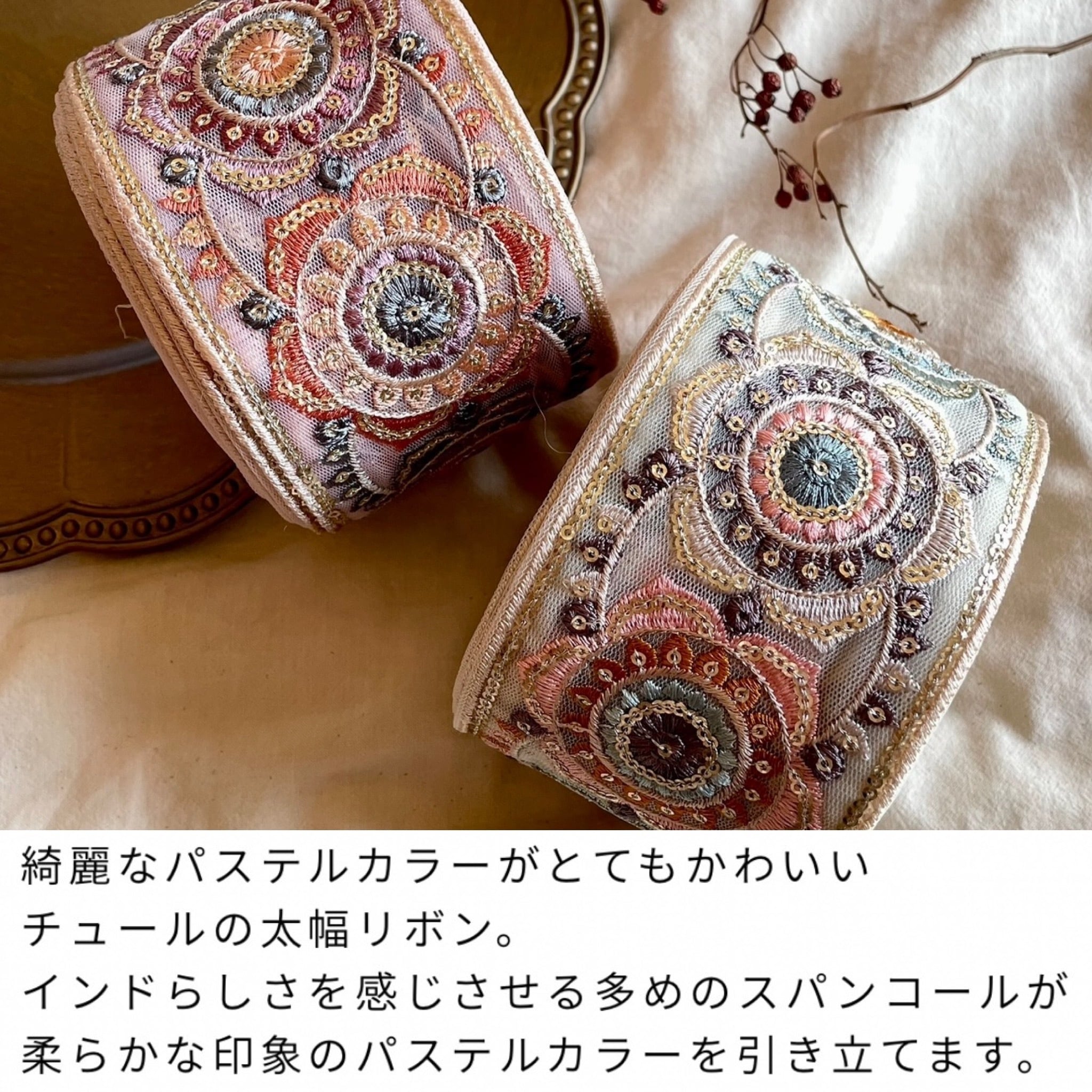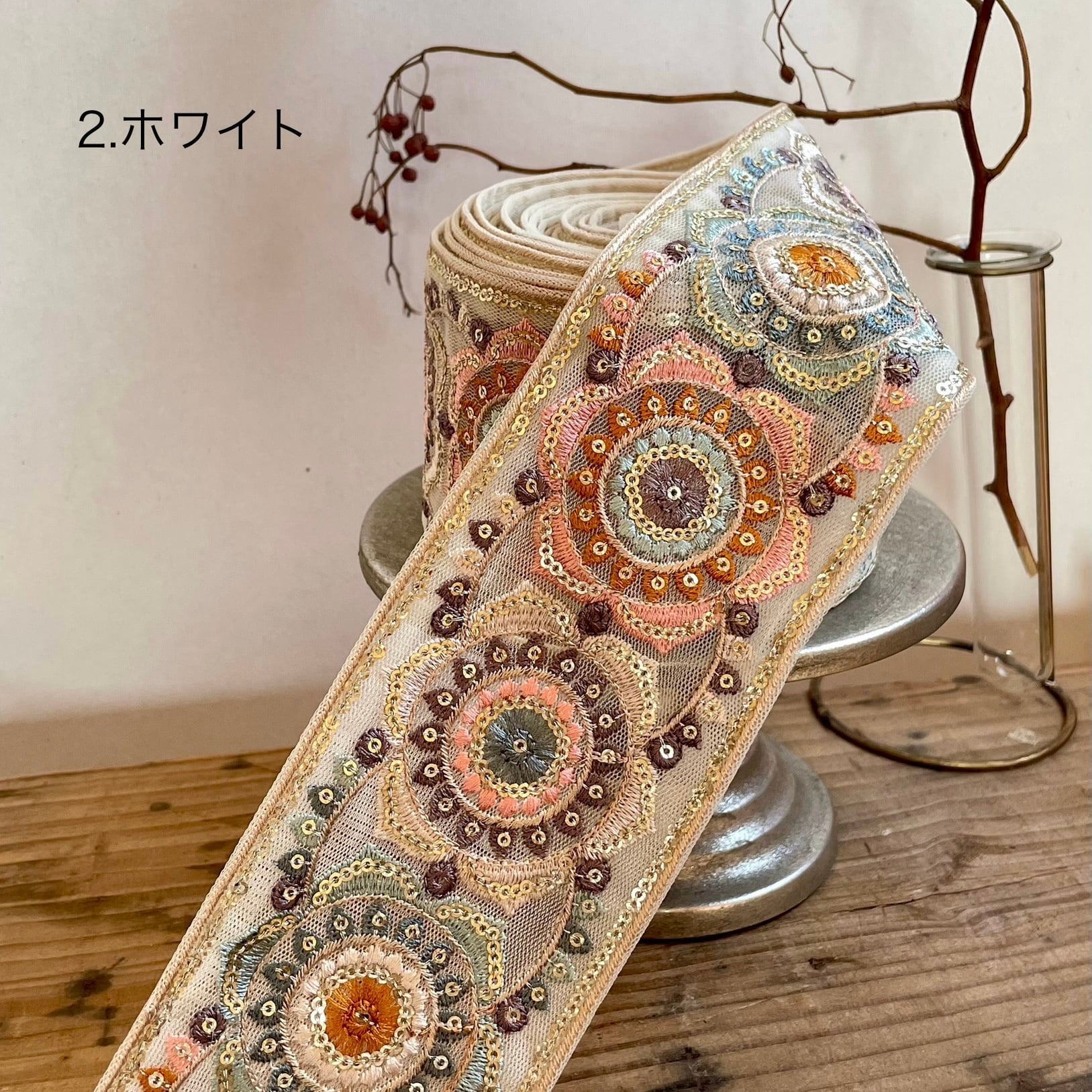8cm幅 インド刺繍リボン