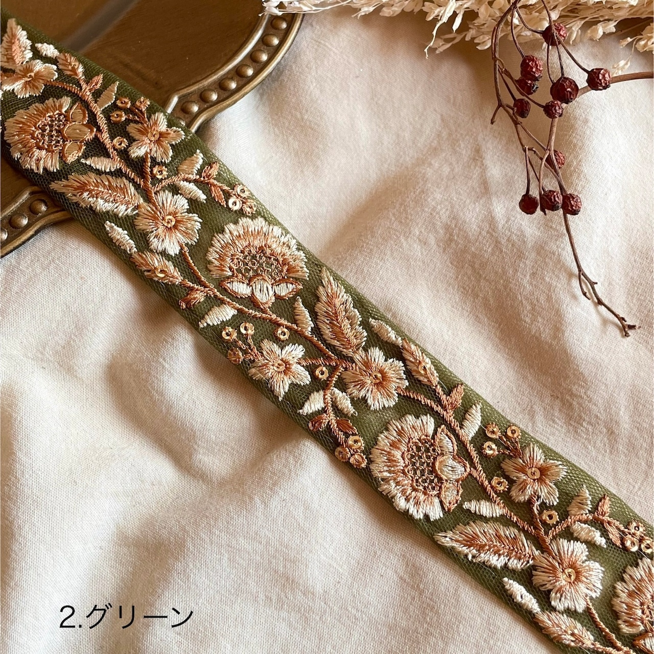 3.7cm幅 インド刺繍リボン