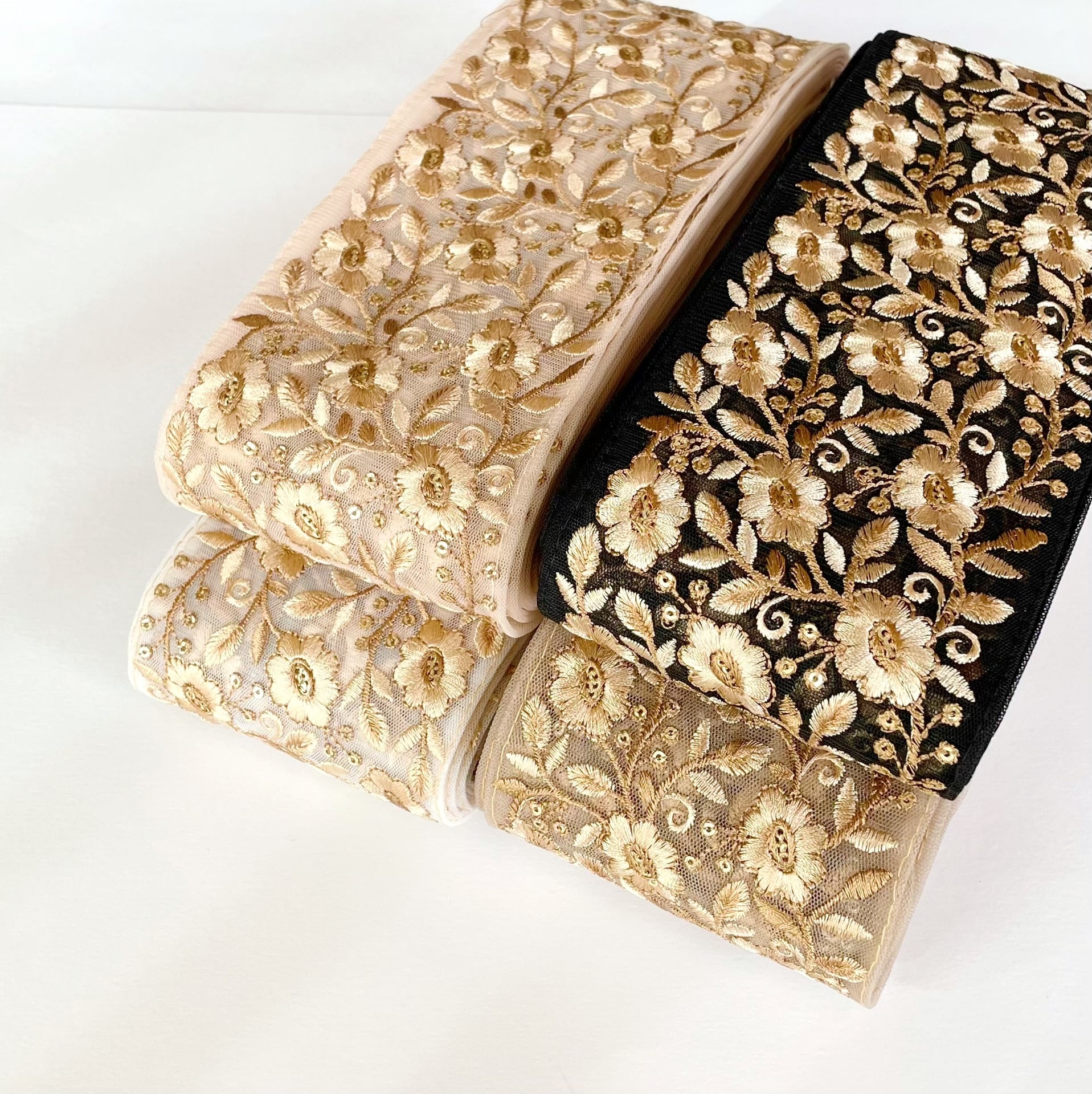 9〜10cm幅 インド刺繍リボン ピンクベージュ 切り売り